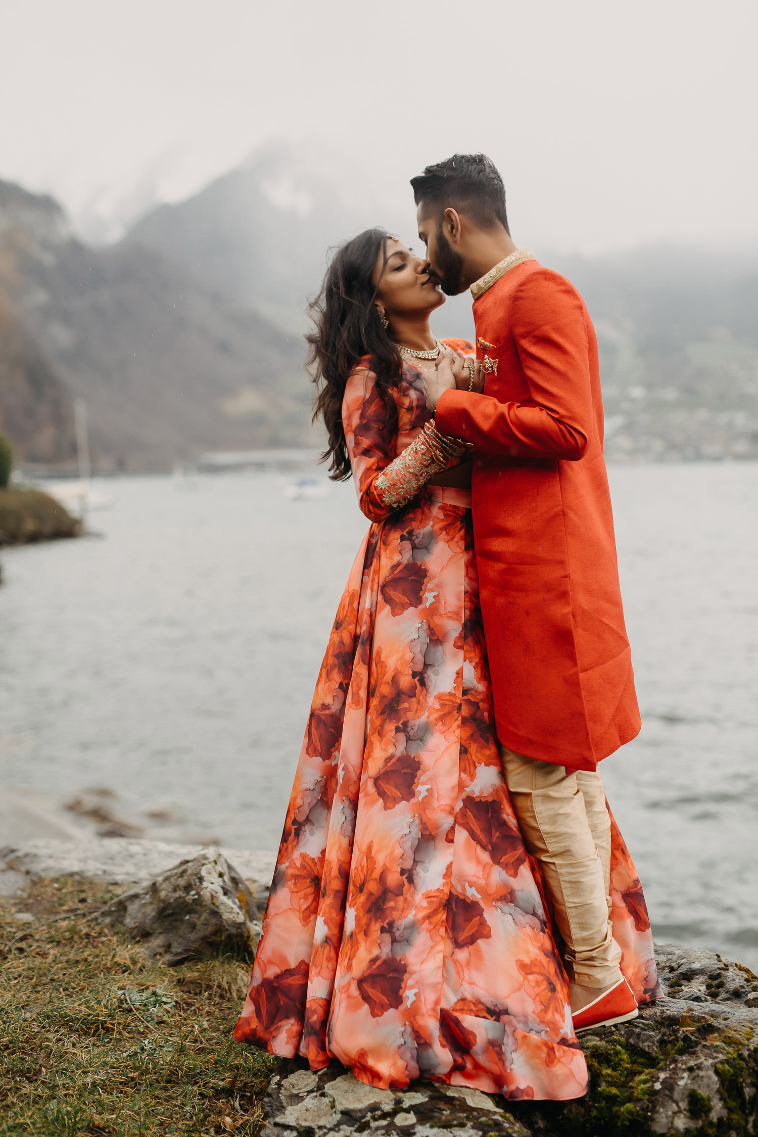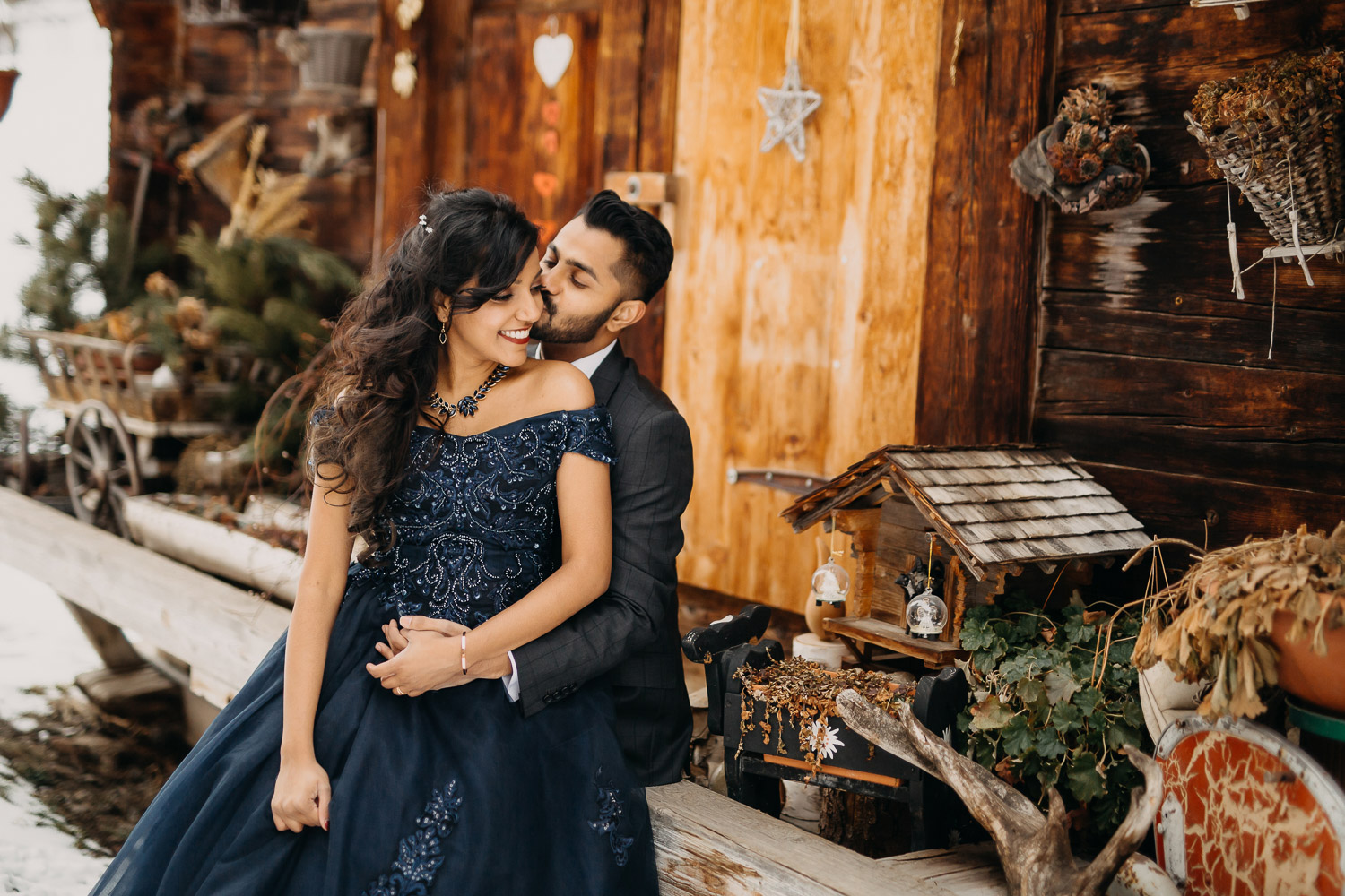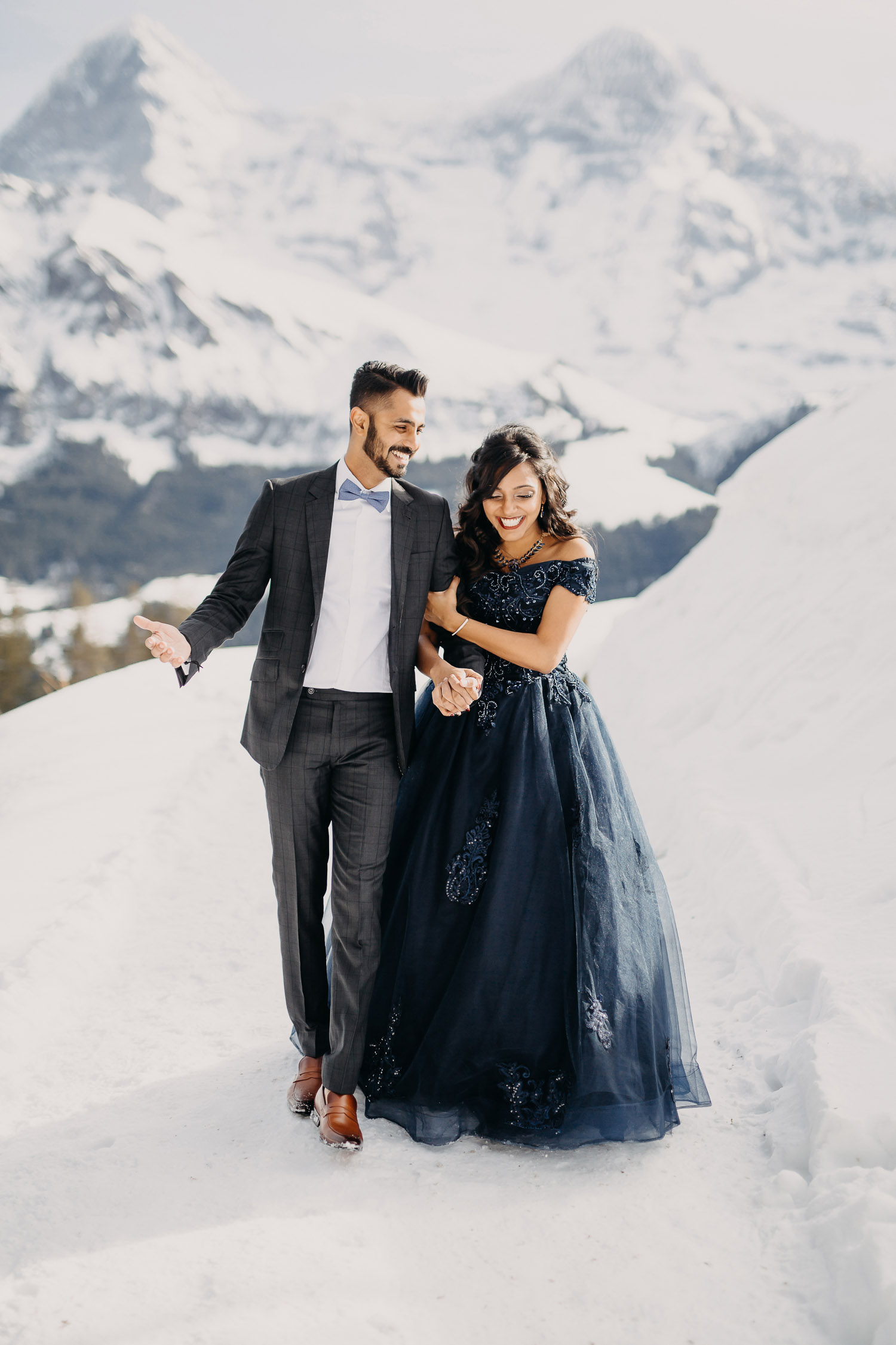 Nestled in the majestic mountains, Mahen and Archana’s engagement session showcased the beauty of nature and the profound connection they share. As the winter sun painted the landscape with a warm glow, their love blossomed against the backdrop of snow-capped peaks and the tranquil charm of the city below.
